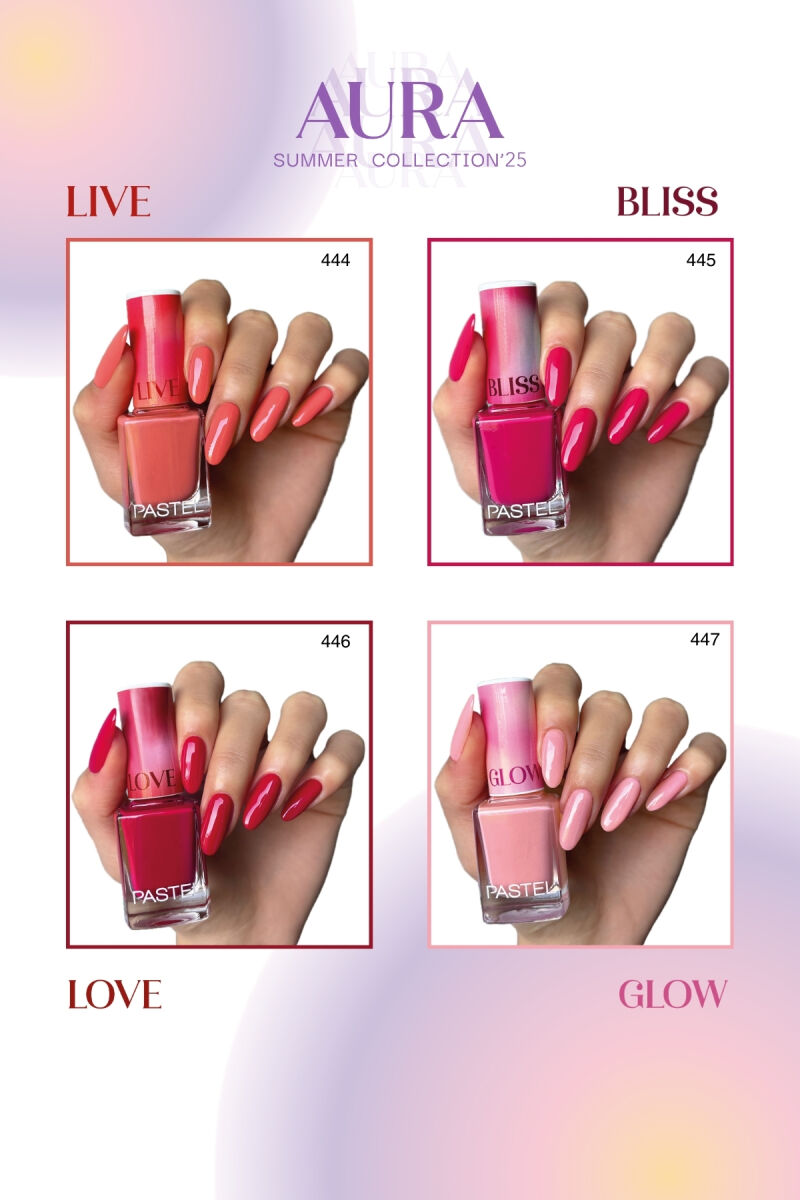 Yeni Pastel aura setinde yer alan oje seçenekleri, 6 güne kadar kalıcılık sağlıyor. Özel formülü ile dayanıklı bir yapıya sahip olan bu ojeler, ilk katta etkili sonuçlar veriyor ve üstün renk örtücülüğü sunuyor. Tek seferde kolay ve pürüzsüz uygulama imkanı sunan set, aşınmaya karşı da dirençli.