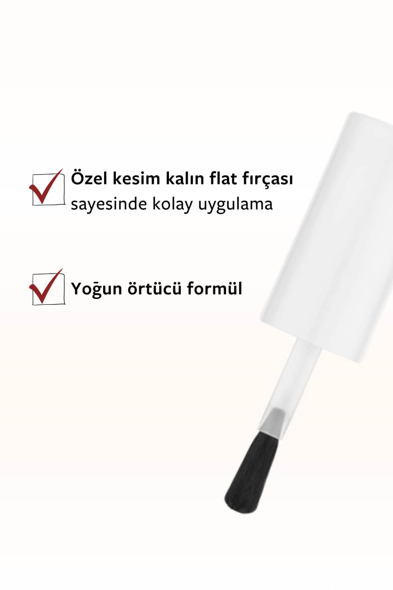 Özel kesim flat fırçasıyla tırnak diplerinden uçlara doğru sürün.