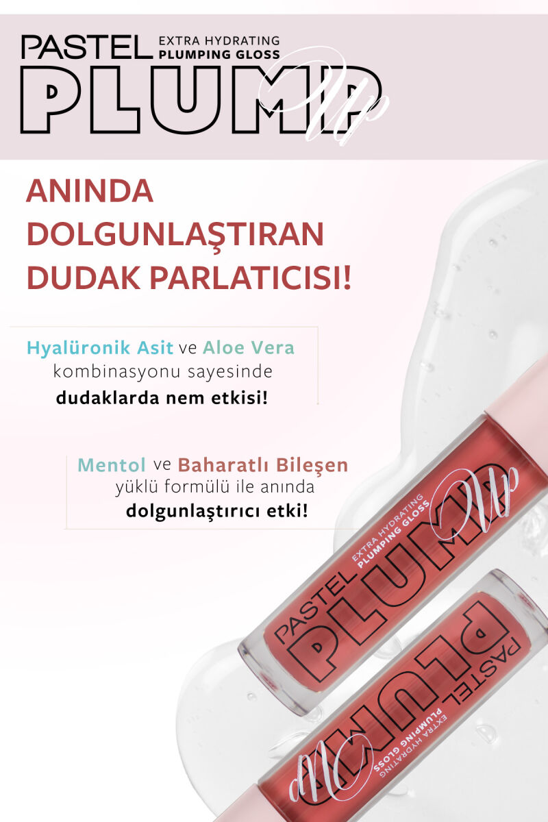 Anında dolgunlaştıran dudak parlatıcısı Pastel Plump-Up Plumping Gloss, içeriğindeki mentol ve Chili Pepper baharatlı bileşen yüklü formülü ile anında dolgun dudaklar!